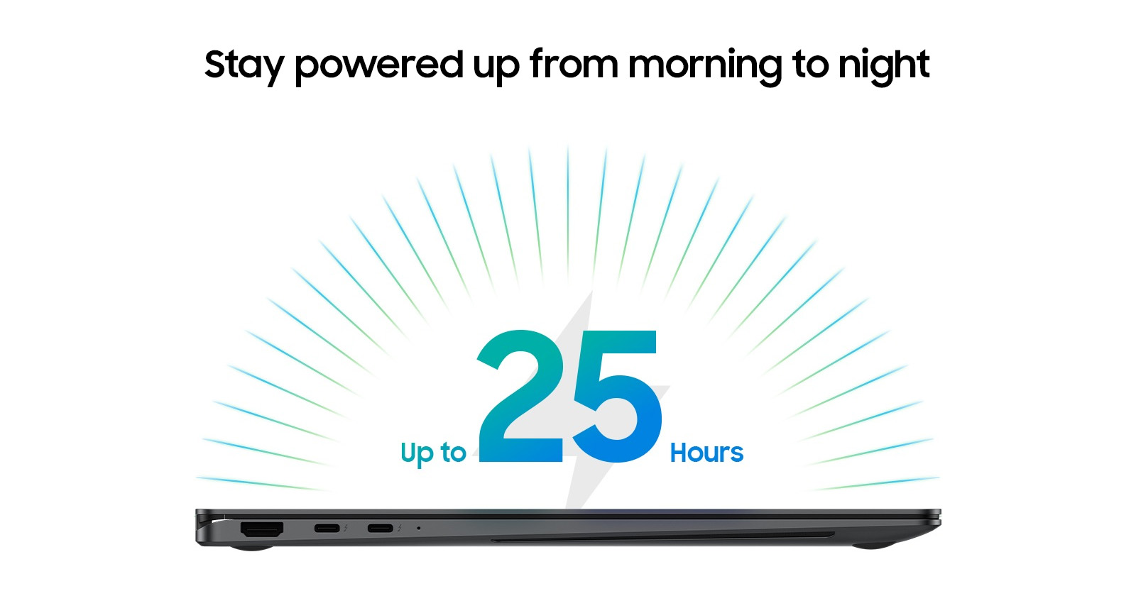 7. Based on results from internal lab tests for local video playback time conducted by Samsung. Tested with results from a pre-release version of the device using inbox 65W charger under settings (1080p video playback from video files stored on the device's local storage, player-Windows video players (Media Player, Movies & TV, Films & TV) with full screen, brightness-150nits, wired earphone with default volume, airplane mode on, keyboard backlight off) without connection to Wi-Fi or mobile network, measuring the time until the device is discharged to 2%. Battery life varies significantly depending on settings, network environment, usage patterns and other factors. Actual charging speed may also vary depending on the actual usage, charging conditions and other factors.