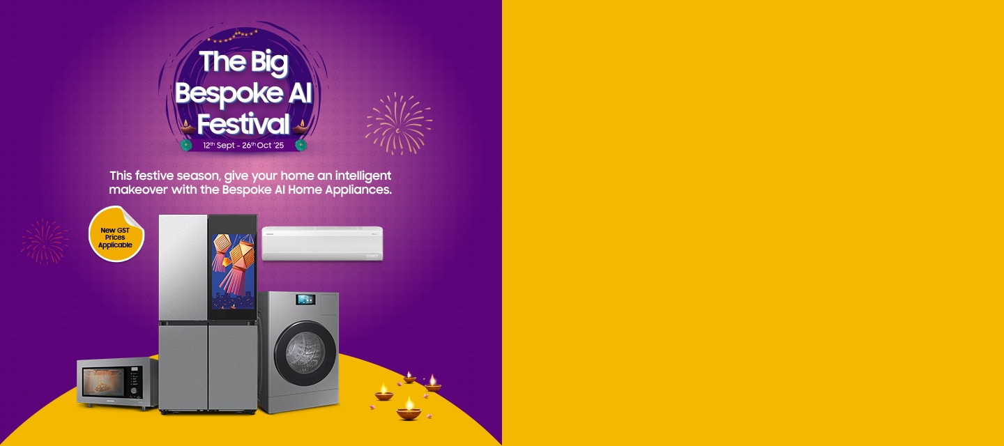 Image simulated for representational purposes only. Colour and model/variant subject to availability. Products sold separately. Actual UX/UI may differ. T&C apply. Offers may be revised or withdrawn without prior notice. All third party logos/brands are trademarks/registered trademarks of the respective brand/company. *Cashback at the sole discretion of the bank/NBFC & subject to a maximum capping limit. Cashback may vary for each product. Samsung disclaims all claims and losses arising out of it. ^Special benefits provided by the brand at its sole discretion and may vary for each product/model wise. For more details on SmartPlaza offers, please visit https://www.samsung.com/in/offer/smartplaza. The final price at the sole discretion of the dealer. **Applicable on select products when installed by Samsung Authorised Service Centre. Please contact dealer for further details.