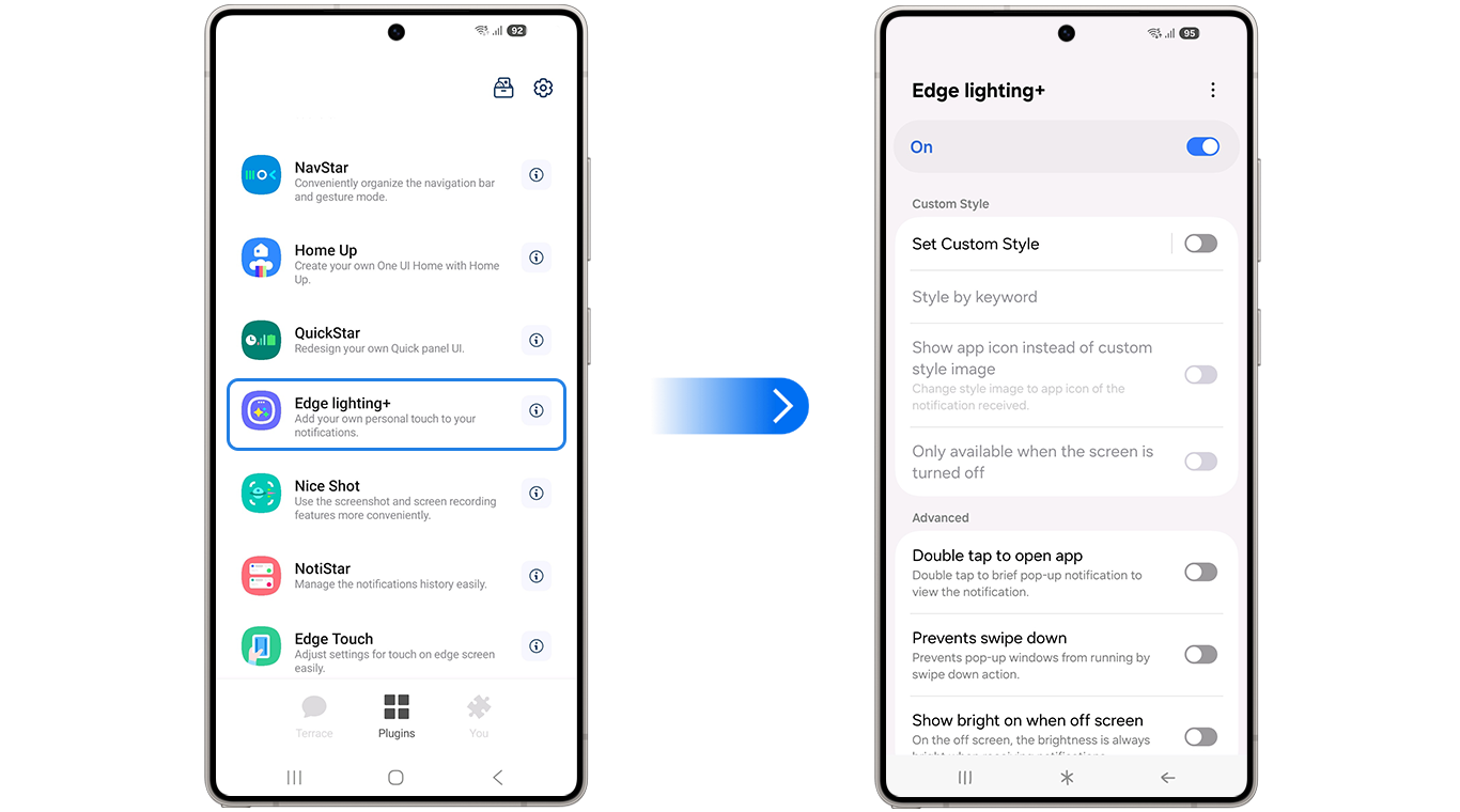 - Customize the edge lighting style displayed on the screen when receiving notifications