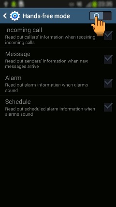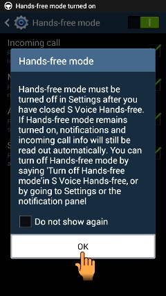 Now, Hands-free mode Usage information will appear tap on OK after reading it. Hands-free mode is now enabled.