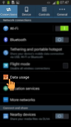 Tap on Settings. Under Connections option, tap on Data usage as shown below :