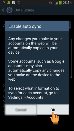 Now tap on Auto sync data check box and then tap on OK as shown below :