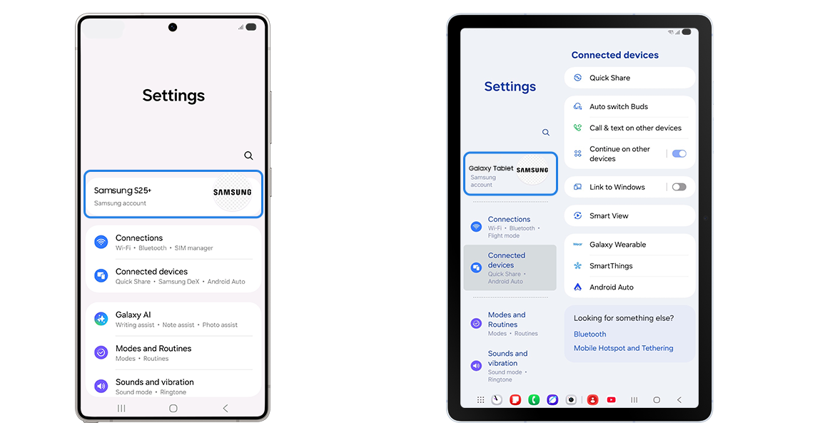 Make sure your Galaxy devices are connected to the same Wi-Fi network, have Bluetooth turned on and are logged into the same Samsung account.