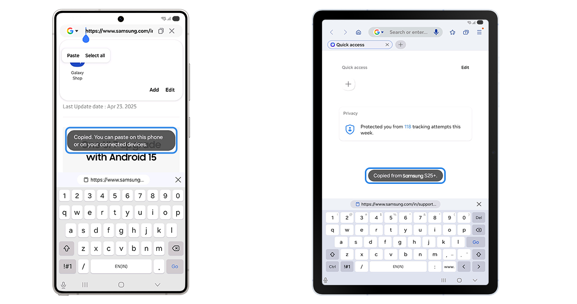 Seamlessly copy and paste across Galaxy devices with Internet or Notes app
