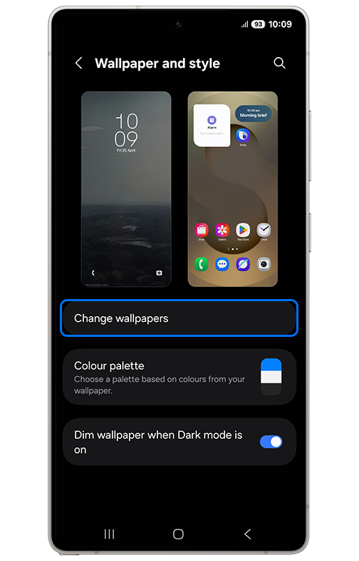 The Frame and Effect feature on Galaxy devices, let users personalize their wallpaper by adding customizable frames and visual effects. It offer options to select frames, adjust colors, and apply effects to enhance photos, making them more visually appealing for lock and home screens.