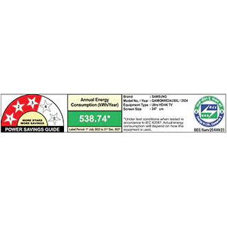 *Applicable on C-Series UHD and subsequent line-ups, w.e.f. 28th Nov. 2023. *You will need a Samsung Account to access our network-based smart services, Smart TV features and other network based smart services. If you choose not to log-in, you will get access to over-the-air (OTA) television content (via tuner or antennas) and external devices via HDMI. *Image simulated for representational purpose only. Third party logos/marks are trademarks/registered trademarks of respective third party. *Subject to Wi-Fi/ internet/network connectivity.