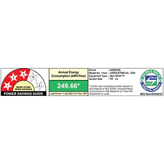 *Applicable on C-Series UHD and subsequent line-ups, w.e.f. 28th Nov. 2023. *You will need a Samsung Account to access our network-based smart services, Smart TV features and other network based smart services. If you choose not to log-in, you will get access to over-the-air (OTA) television content (via tuner or antennas) and external devices via HDMI. *Image simulated for representational purpose only. Third party logos/marks are trademarks/registered trademarks of respective third party. *Subject to Wi-Fi/ internet/network connectivity.
