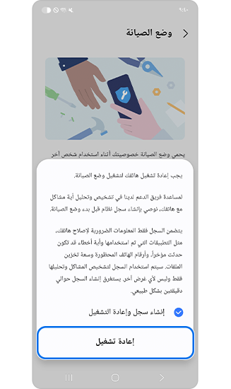 - بمجرد تنشيط وضع الصيانة، يتعذر الوصول إلى بياناتك الشخصية، وتتوفر فقط التطبيقات المثبتة مسبقًا.