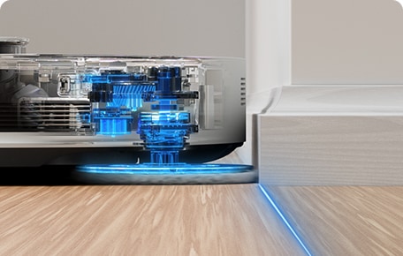 عند استخدام المكنسة على مزيج من الأرضيات المختلفة، يضبط وضع التنظيف بتقنية الذكاء الاصطناعي (AI) الشفط على حسب كل نوع، ومن ثمَّ ضمان موازنة فعالية التنظيف.
