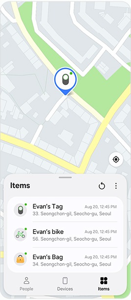 SmartTag ببەستە و بەدواداچوون بۆ هەموو شتێک بکە، لە هەر کاتێکدا ― کلیل، پاسکیل، جانتا یان تەنانەت ئاژەڵی ماڵەوەت. مێژووی جووڵەی هەفتەیەک لەسەر نەخشە ببینە، و شوێنەکە هاوبەش بکە بۆ ئەوەی خێزانەکەت بتوانن یارمەتیدەر بن لە بەدواداچوون.9