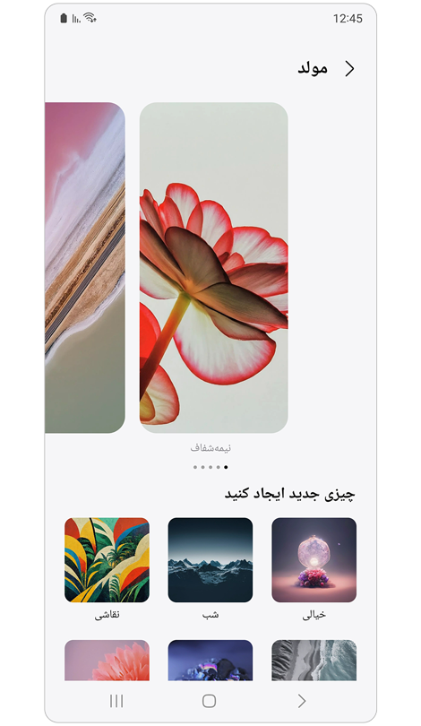 تصویر زمینه مولد پلتفرم تعاملی جهت توسعه تصویر زمینه شخصیشده برای صفحه اصلی و صفحه قفل است. کاربران میتوانند تصاویر زمینه و صفحه قفل مورد علاقه خود را از بین دستهبندیها و درخواستهای ارائه شده توسط هوش مصنوعی انتخاب و تنظیم نمایند.
