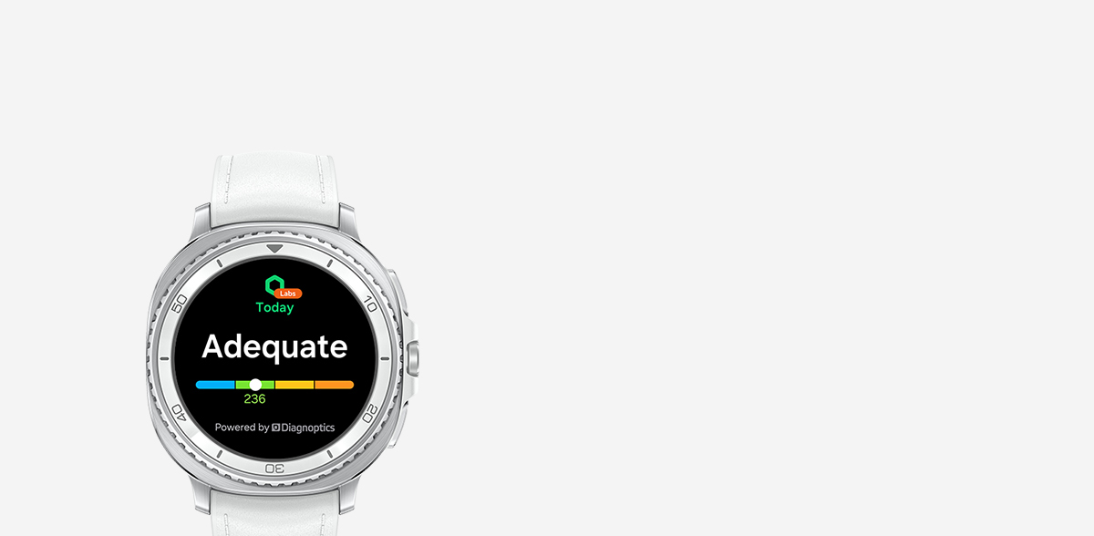 - در برنامه Samsung Health نسخه 6.24 یا بالاتر در دسترس است. جفتسازی با تلفنهای هوشمند Samsung Galaxy با Android OS 11 و بالاتر ضروری است. ورود به Samsung Account ضروری است. به دادههای حداقل 7 روز (شامل 1 روز کاری و 1 روز تعطیل) نیاز دارد).