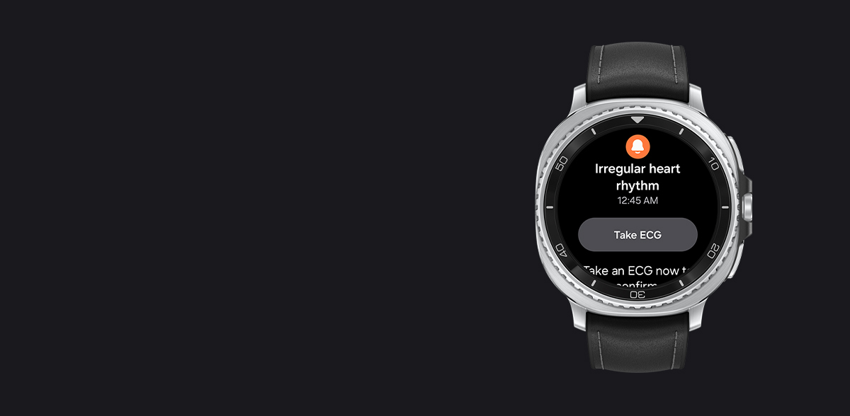 - دسترسپذیری ECG و قابلیت اعلان ریتم نامنظم قلب (IHRN) ممکن است برای هر کشور یا منطقه متفاوت باشد. به دلیل محدودیتهای کشوری در زمینه کسب تاییدیه/ثبت بهعنوان «نرمافزار در قالب دستگاه پزشکی» (SaMD) برنامه ECG فقط در تلفنها و ساعتهای خریداریشده از کشورهایی که این سرویس در آنها ارائه میشود، قابل استفاده است (البته، سرویس ممکن است برای کاربرانی که به کشورهای دیگر سفر میکنند، قابل استفاده نباشد). برای کسب اطلاعات بیشتر و تازهترین بهروزرسانی درباره کشورهای مشمول سرویس، به https://www.samsung.com/apps/samsung-health-monitor مراجعه کنید. این قابلیت برای استفاده افراد زیر 22 سال در نظر گرفته نشده است. تفسیر پیشبینی یا اقدام بالینی بر اساس خروجی دستگاه، بدون مشاوره با کارشناس مجاز خدمات درمانی، ممنوع است.