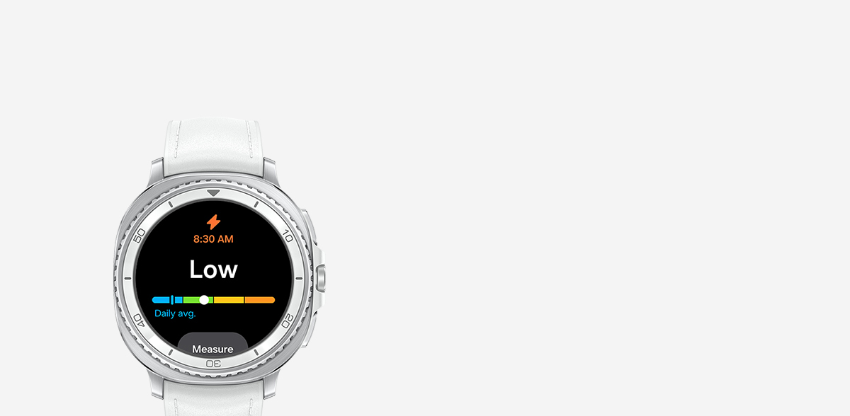 - Energy Score در تلفن Android (Android 11 یا بالاتر) در دسترس است و به برنامه Samsung Health (v6.27 یا بالاتر) نیاز دارد). ورود به Samsung Account ضروری است. دسترسپذیری سرویس ممکن است برای هر کشور، منطقه،زبان متفاوت باشد. برای بررسی Energy Score، دادههای بهدستآمده از Samsung Galaxy Watch یا Samsung Galaxy Ring باید با برنامه Samsung Health همگام شود. به حداقل دادههای فعالیت و خواب روز گذشته، و دادههای ضربان قلب در طول خواب، نیاز دارد. استفاده برای تشخیص، شناسایی یا درمان مشکلات جسمی ممنوع است. نتایج فقط مصرف شخصی دارد. لطفاً برای دریافت مشاوره با یک پزشک متخصص مشورت کنید.