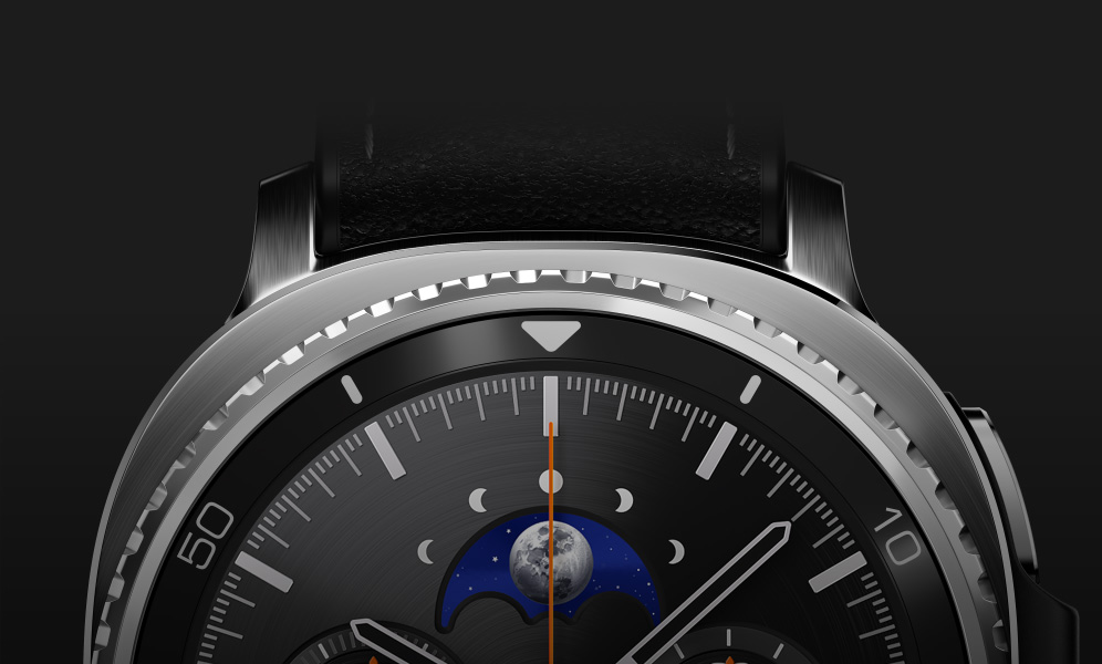 Close-up of Galaxy Watch8 Classic with the focus on the Rotating Bezel.