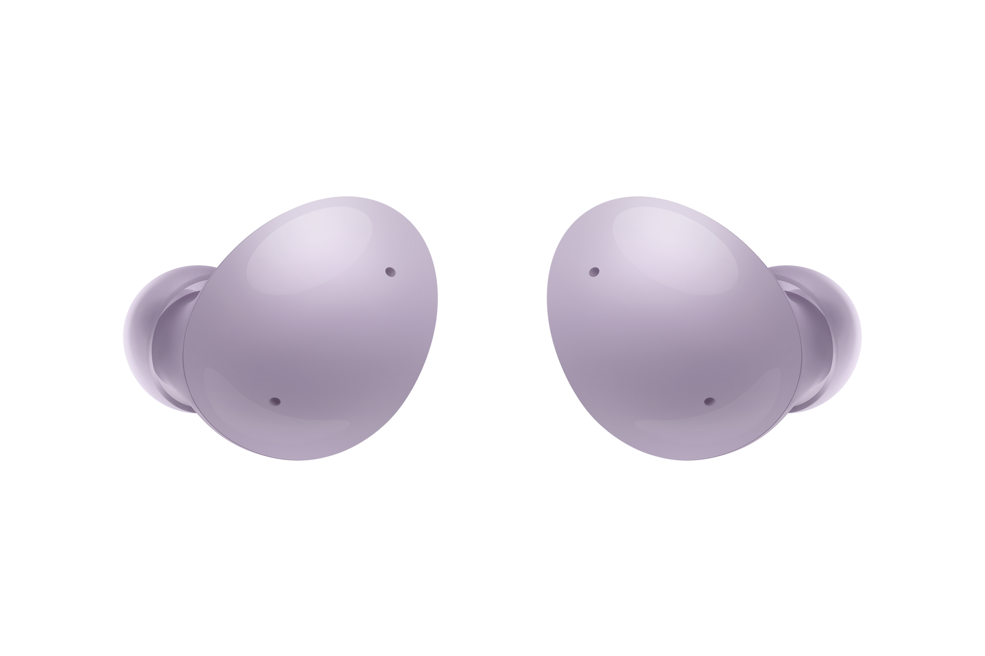 Una custodia Buds2 bianca è collocata davanti a un deserto con un cielo lilla. Vengono mostrati due auricolari Buds2 color lavender. Una custodioa Buds2 è aperta con due auricolari all’interno. Ci sono due auricolari mostrati fuori dalla custodia.