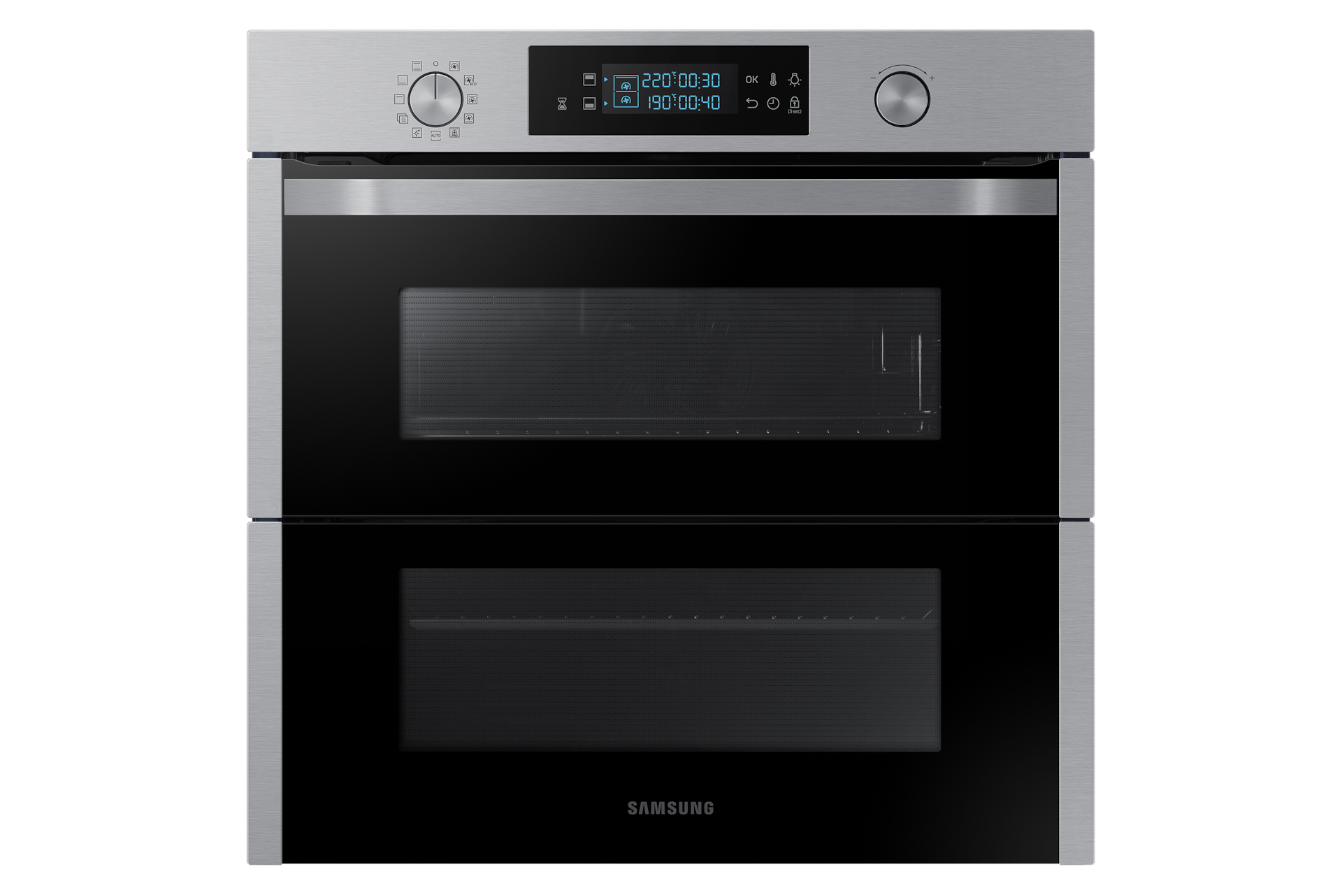 La tecnologia Dual Door ti offre la massima versatilità per cuocere vari piatti. Apri la metà superiore del forno e cuoci le pietanze più piccole nella parte in alto. Inoltre, mentre cucini diversi cibi puoi accedere agevolmente alla parte superiore senza disperdere il calore nella parte inferiore. Oppure puoi aprire la porta per intero ed usare l'intera cavità del forno.