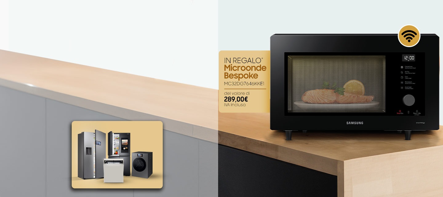 Operazione a premio promossa da Samsung Electronics Italia S.p.A. riservata a persone fisiche maggiorenni residenti nella UE che, in qualità di consumatori ai sensi del D. Lgs. 6 settembre 2005, n. 206 (sono pertanto esclusi gli acquisti effettuati con Partita IVA, nonché gli acquisti effettuati nell’ambito dei programmi “Samsung Partners Reward” e “Samsung Student”) acquisteranno sul sito Samsung Shop Online www.samsung.com/it o su Samsung Shop App, dalle ore 00:00:01 del 22 ottobre 2025 alle ore 09:00:00 del 3 novembre 2025, uno degli Elettrodomestici a marchio Samsung specificamente indicati nell’Allegato A al Regolamento consultabile su https://www.samsung.it/promozioni (i “Prodotti Promozionati”). Premio: un Microonde Combinato Bespoke Cottura Ventilata 32L a marchio Samsung, codice prodotto MC32DG7646KKE1. La scelta di partecipare all’operazione a premio deve avvenire contestualmente all’acquisto di uno dei Prodotti Promozionati inserendo, gratuitamente, a carrello il premio. A condizione che il destinatario non eserciti il diritto di recesso ex articolo 52 D.Lgs. 206/2005 in relazione al prodotto promozionato acquistato, il Premio verrà consegnato gratuitamente, entro 180 giorni dalla data di spedizione dell’E-mail di conferma d’ordine presso l’indirizzo di consegna, indicato dal destinatario al momento dell’acquisto del prodotto promozionato. Operazione a premio NON cumulabile con altre iniziative promozionali promosse sugli stessi Prodotti Promozionati da Samsung Electronics Italia S.p.A. durante il periodo di svolgimento della presente Operazione.