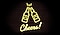"Cheers!" Immagine di un brindisi con due bottiglie.