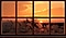 Scena di un sole che tramonta sugli alberi oltre una finestra.