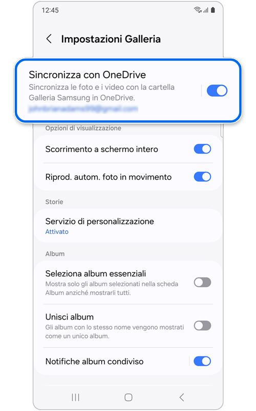 Nota: nell'utilizzare qualsiasi funzione di sincronizzazione, inclusa OneDrive, si potrebbe incorrere in costi addebitati in base al piano dati della rete utilizzata.