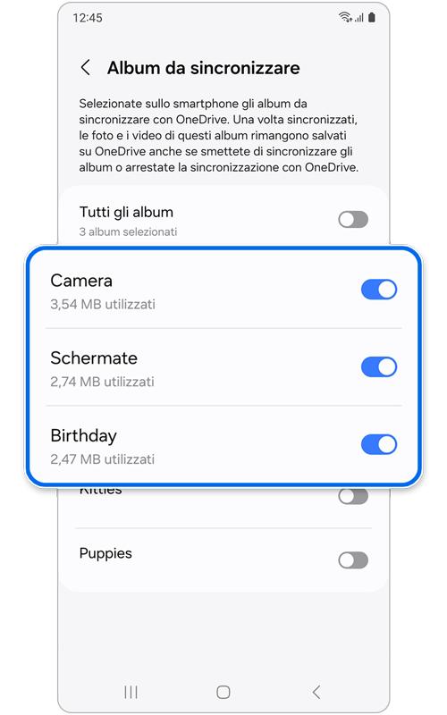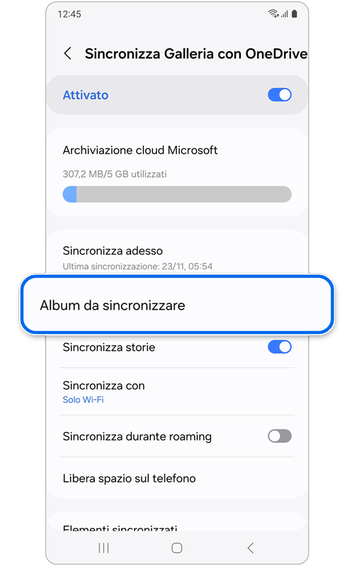 Oltre ai singoli file, è possibile selezionare anche album da sincronizzare con OneDrive.