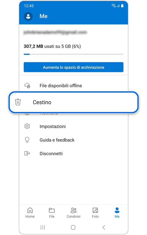 Come per l'app Galleria, è possibile sincronizzare anche My Files con OneDrive.