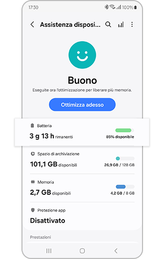 ※ I consigli per estendere la durata della batteria si applicano al SO Android T (Versione 13). L'aspetto e il titolo di specifici menu di impostazioni possono variare a seconda della versione di Android disponibile.