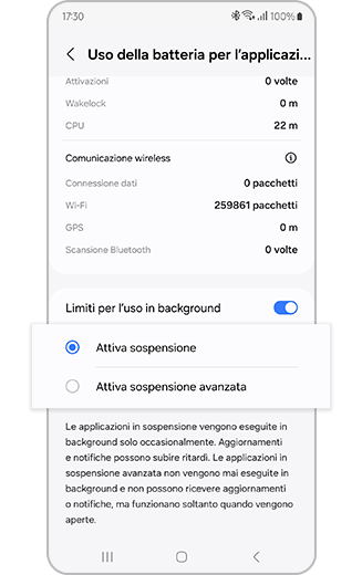 Metti le app che usi solo raramente in sospensione o in sospensione avanzata