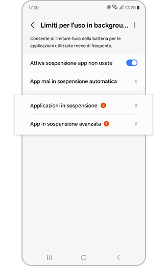 Per impedire la sospensione o la sospensione avanzata di alcune app, segui le istruzioni qui in basso