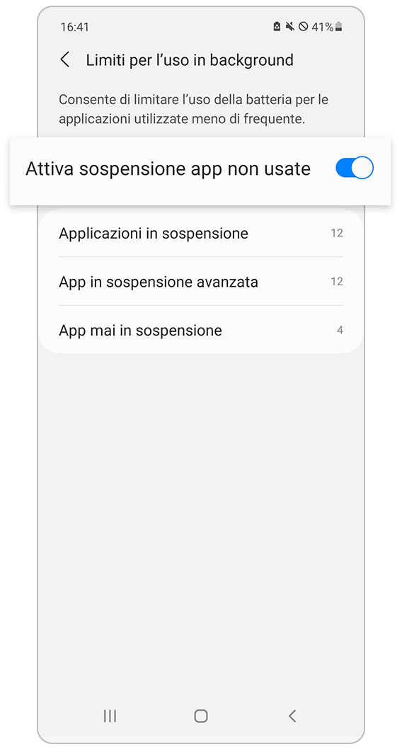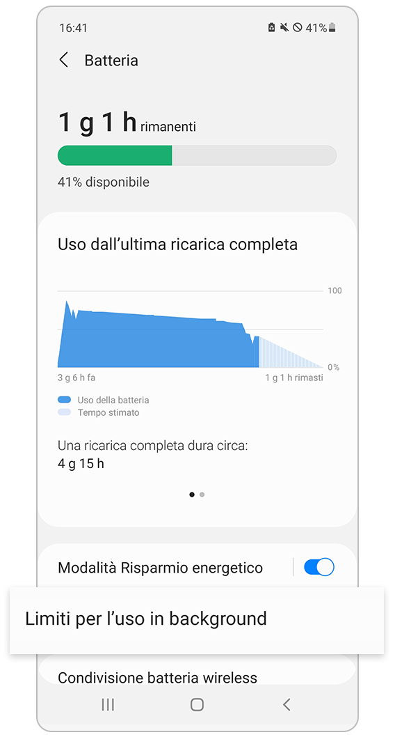 Per risolvere il problema, prova con “Limiti per l’uso in background”:
