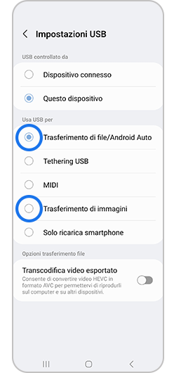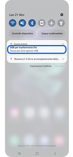 Se il cavo USB che hai a disposizione e la porta USB del telefono sono di tipo diverso, puoi utilizzare un connettore Micro USB Samsung, per esempio, con un’estremità Micro USB e l’altra USB Tipo C.