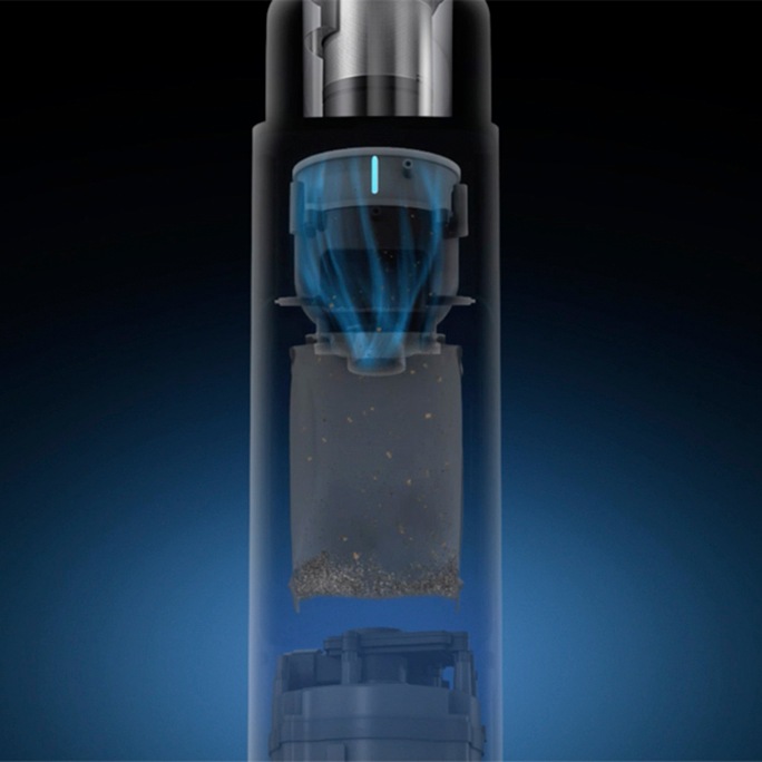 1 Livello delle polveri sottili misurato allo svuotamento del contenitore per la polvere. In base alla concentrazione di PM10 (µ/m3), livello massimo rispetto a Samsung VC7000. Basato su test UL. I risultati possono variare in base all’effettivo utilizzo.