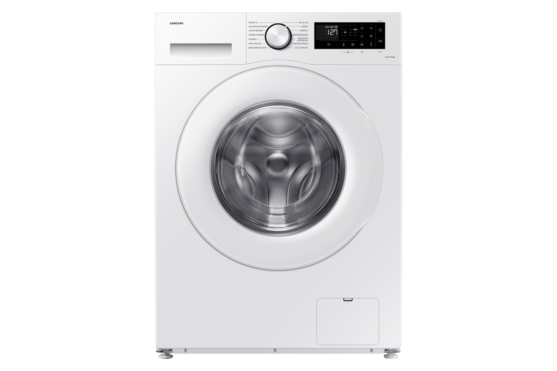 1Testato su Samsung WW8800M rispetto a WW8500K. Risparmia fino al 50% di tempo sul ciclo Cotone (40°, mezzo carico) ed E-Cotone mantenendo le performance di lavaggio entro ±2%, consumando fino al 20% di energia in meno sul ciclo Ecolavaggio Rapido (40°C, 5kg di carico) basato su dati Intertek. La durata del ciclo può variare in base al fornitore dell'acqua e al peso/tipo di carico.
