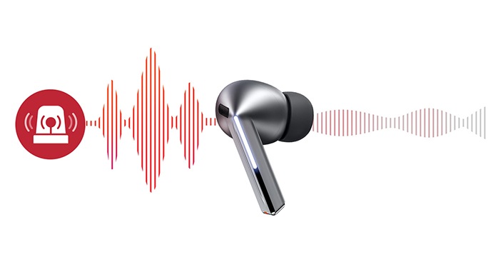 Galaxy Buds3 ProはGalaxy AIとマイクで周囲の音を検知し、 自動的にノイズコントロールを最適化します。騒がしい場所を通るとANCレベルが上がり、静かな場所に行くとANCレベルが下がります。