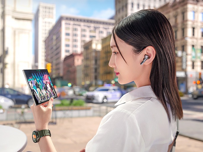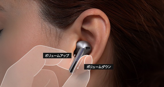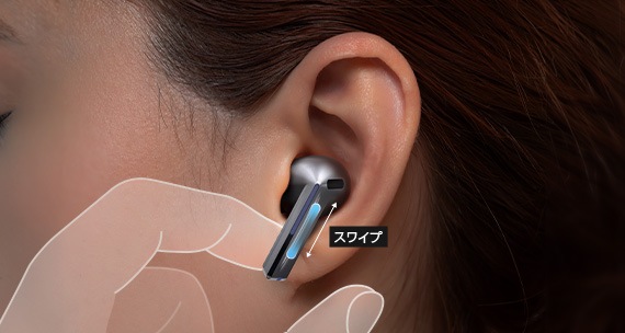 リスニングモードを使用するには、Galaxy Buds3 Pro | Galaxy Buds3を耳に付けたままピンチ&ホールドするだけでOK。話し手が話している間、Galaxy Buds3が通訳し続けてくれます。