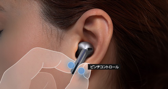 *ピンチ&ホールドジェスチャーの初期設定はノイズコントロールに設定されています。通訳をリスニングモードに変更するには、「Galaxy Wearable」アプリで設定を構成する必要があります。