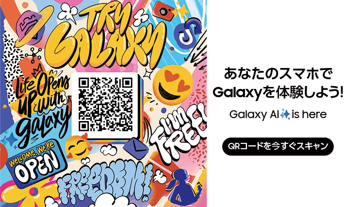 最新のGalaxyスマートフォンはもう体験しましたか?今すぐにお試しいただけます。お持ちのスマートフォンでQRコードをスキャンしてご体験ください! iOSデバイスとAndroid OSデバイス、どちらのスマートフォンでもご利用いただけます。
