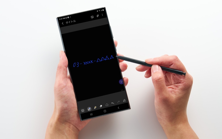 Samsung Galaxy Sシリーズの「Ultra」などにはSペンがスマホに内蔵されているので、ちょっとメモを取りたいときにスマホ本体から取り出してサッとメモが取れます。