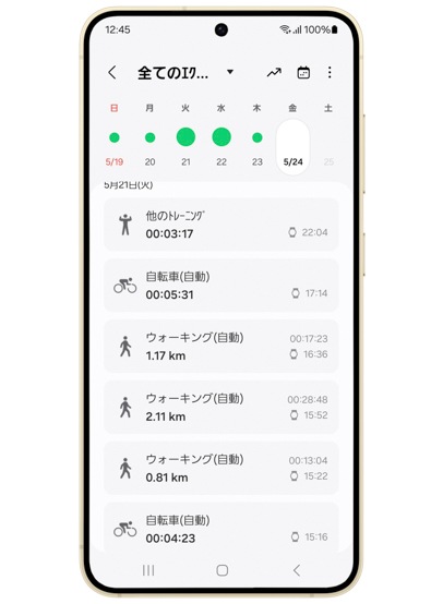 運動をするたびに特別な操作をしなくても、ただ腕に装着しているだけでGalaxy Watch6がウォーキング、ランニング、自転車といったアクティビティを検出して記録してくれます。試しに、装着したまま普段通りの生活をしてみてください。自分って意外とこんなに運動してたんだ!とわかって、すごく楽しいですよ。
