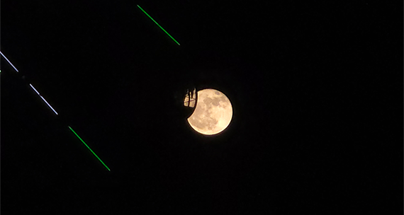 ・一方、Galaxy S25 Ultraでは他社スマホと比べ、望遠撮影時に安定感を感じます。下の写真では、「プロ」モードを使用し、満月にゴンドラのシルエットを合わせました。