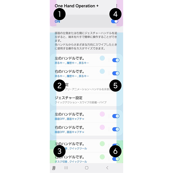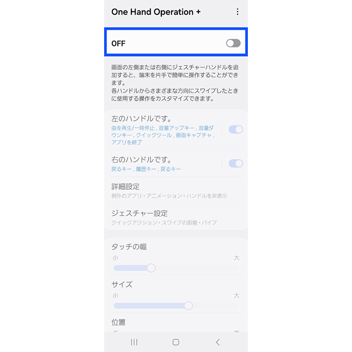 画面の左右のエッジ部分にハンドル機能を追加でき、新たにアクションを割り当てることができます。これによって片手操作をより快適に行うことができるようになります。