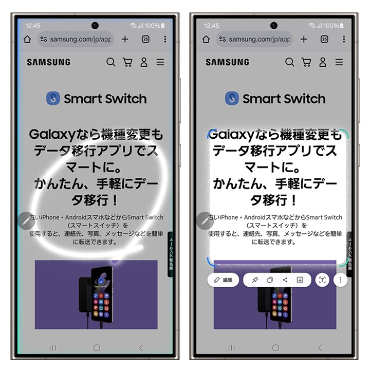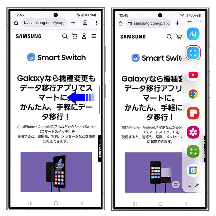 One UI 6.1から、スマート選択がエッジパネル上部に常に表示されるようになりました。スクショしたい部分をかこったり、なぞったり、範囲を選択するだけでピンポイントでのスクショが可能です。画像だけをスクショで残したい時は、スマート選択を活用してみましょう。