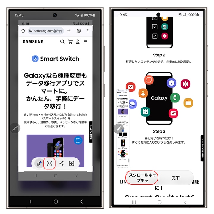 Sペンを使用したスクロールキャプチャの方法