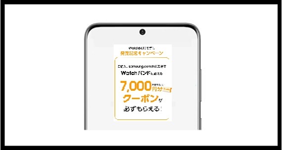 購入特典:Samsungオンラインショップの対象製品でつかえるGalaxy Watch Bandクーポン(7,000円分)