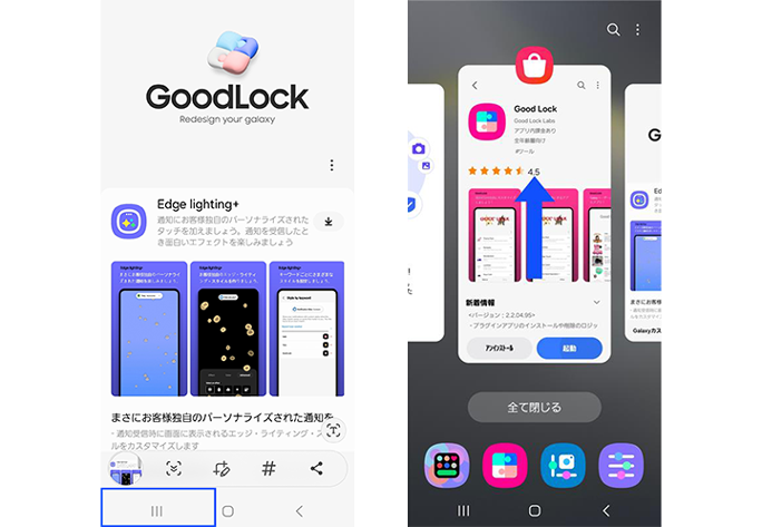 (起動中のアプリが縦に連なって表示される場合は、アプリを左右にスワイプして終了)