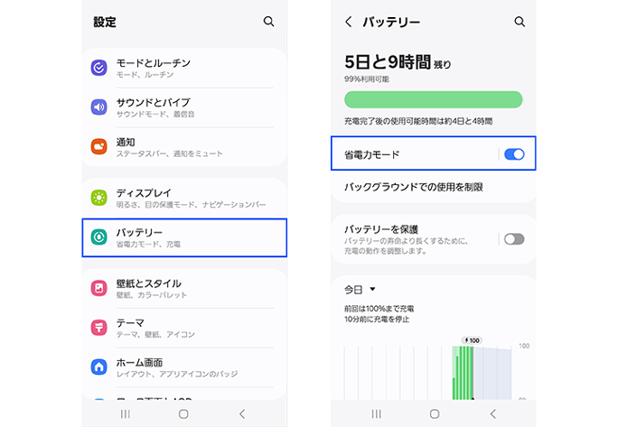 (※省電力モードの名称や制限される機能は機種によって異なる場合があります。)