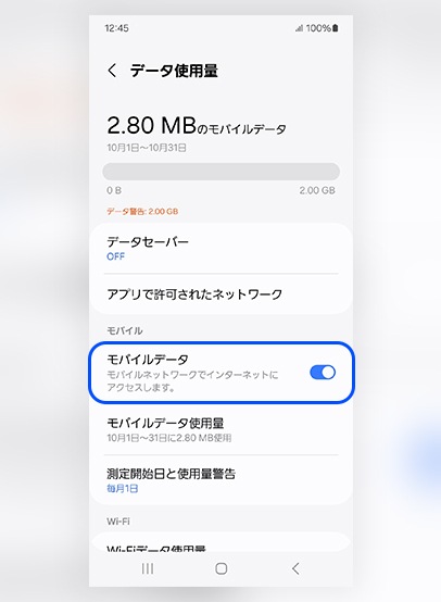 モバイルデータ通信をオフにすれば、Wi-Fi以外でのインターネット接続ができなくなるため、データ使用量を抑えることができます。モバイルデータ通信では、契約プランで定められているデータ容量を使い切ると速度制限がかかり通信速度が遅くなります。
