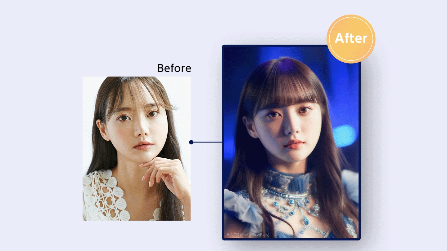 - フォトアシストの「ポートレートスタジオ」機能の使用には、ネットワーク接続とSamsungアカウントへのログインが必要です。ポートレートスタジオで編集すると、写真が最大で約1,000万画素にリサイズされます。画像がAIによって生成されたことを示すために、保存時に出力画像にウォーターマークが重ねられます。結果の正確性は保証いたしません。