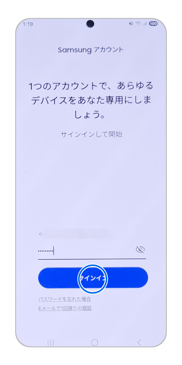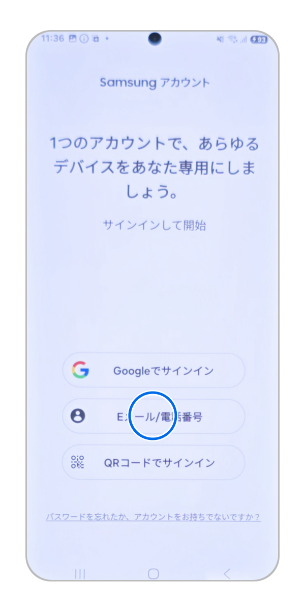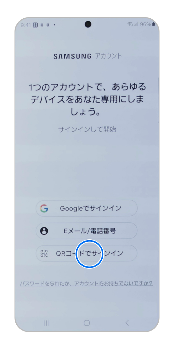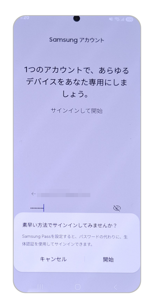すでにお持ちの Samsungアカウントを端末にサインインさせる方法を掲載しています。